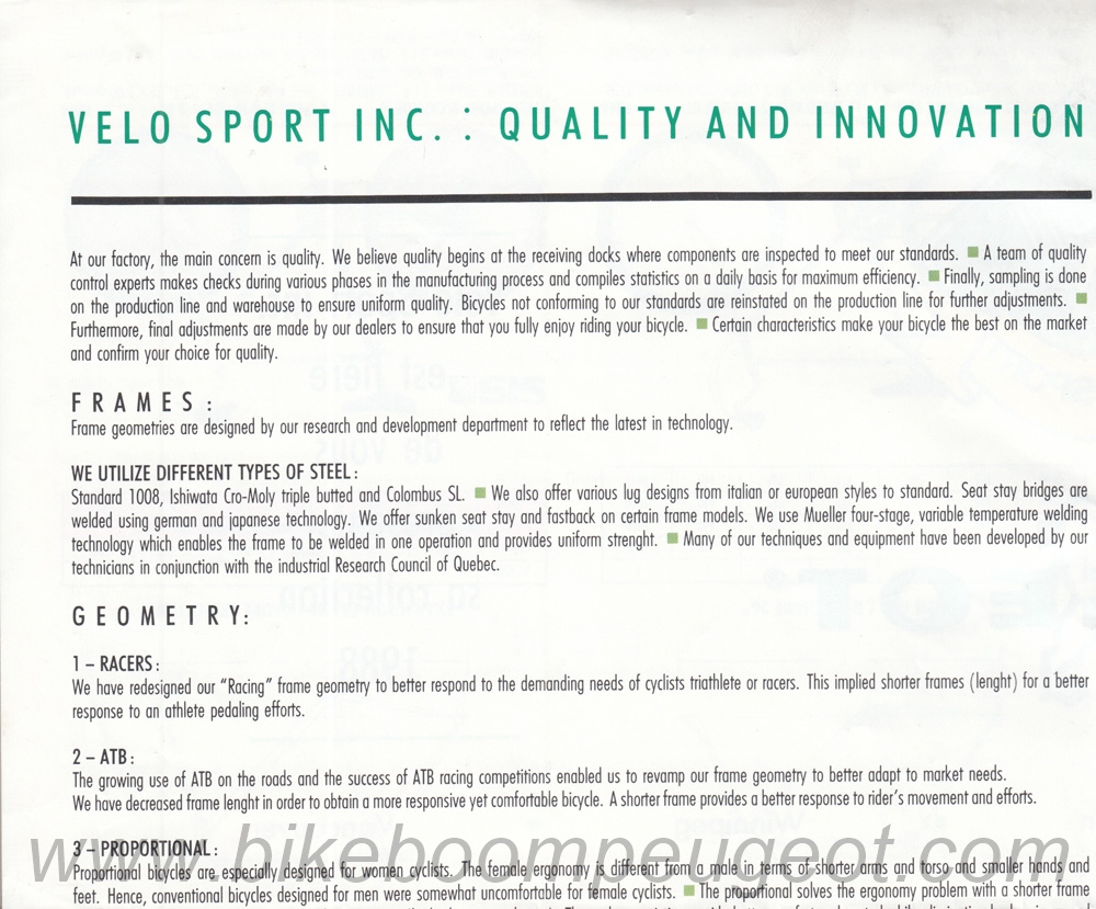 Velo Sport Velomatic, Peugeot Commuter, Velo Sport Express, Velo Sport Routier |
