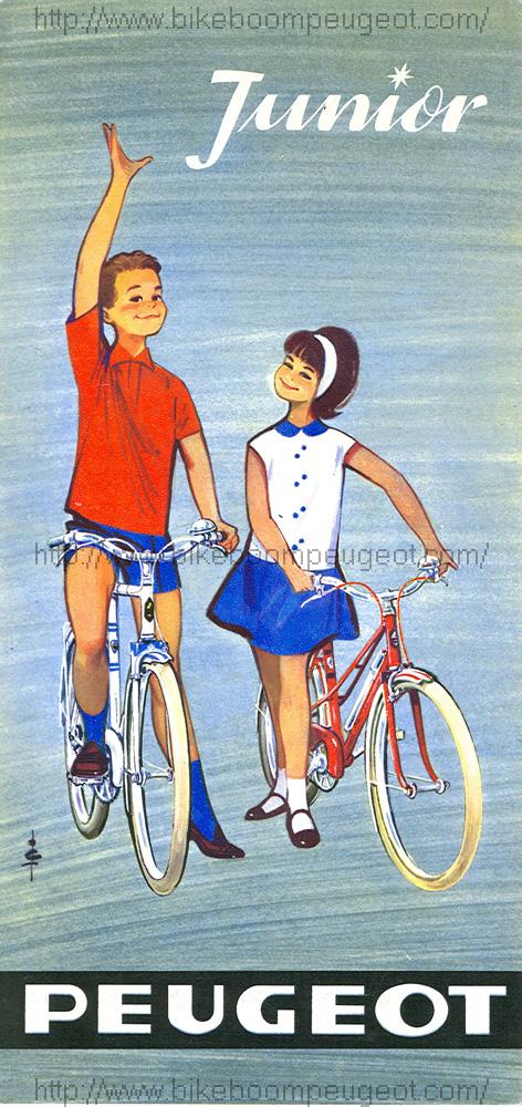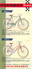 These brochures were published in May of 1964 and are the earliest record I have seen documenting the well-known Peugeot checkerboard racing decals on bicycles available to consumers. This pattern was first seen on Team Peugeot racing bicycles in 1963.