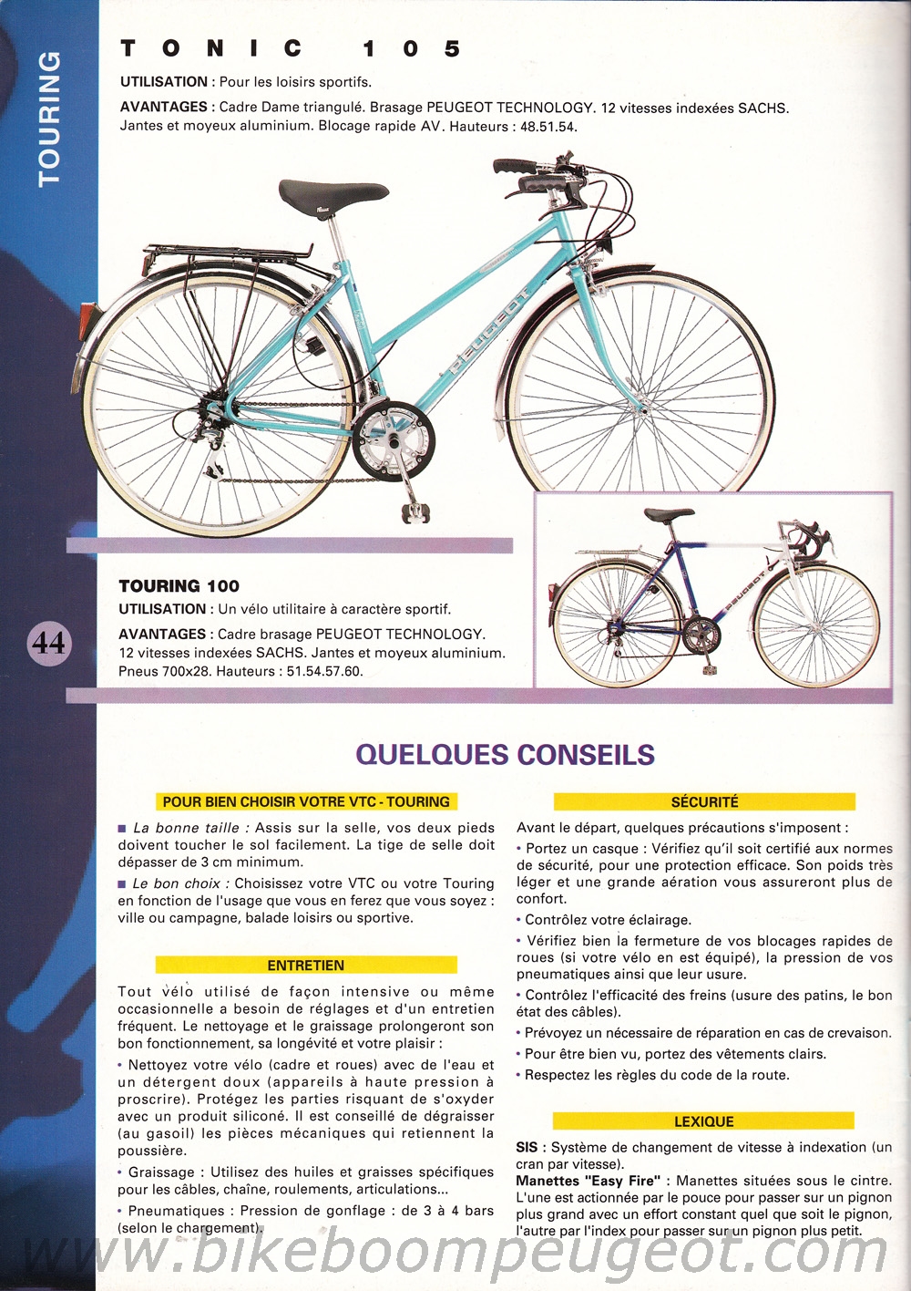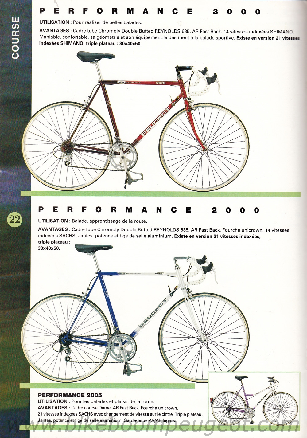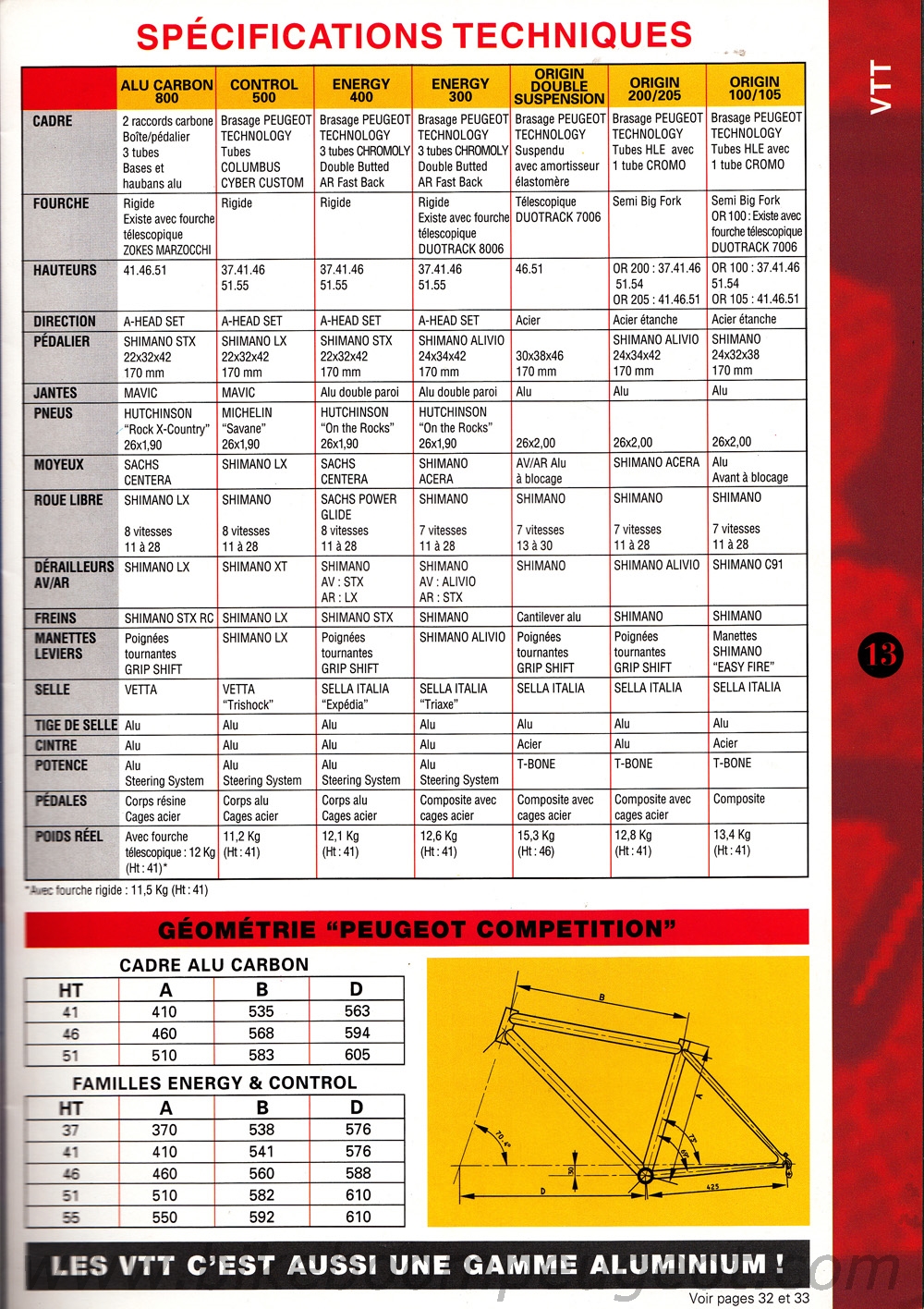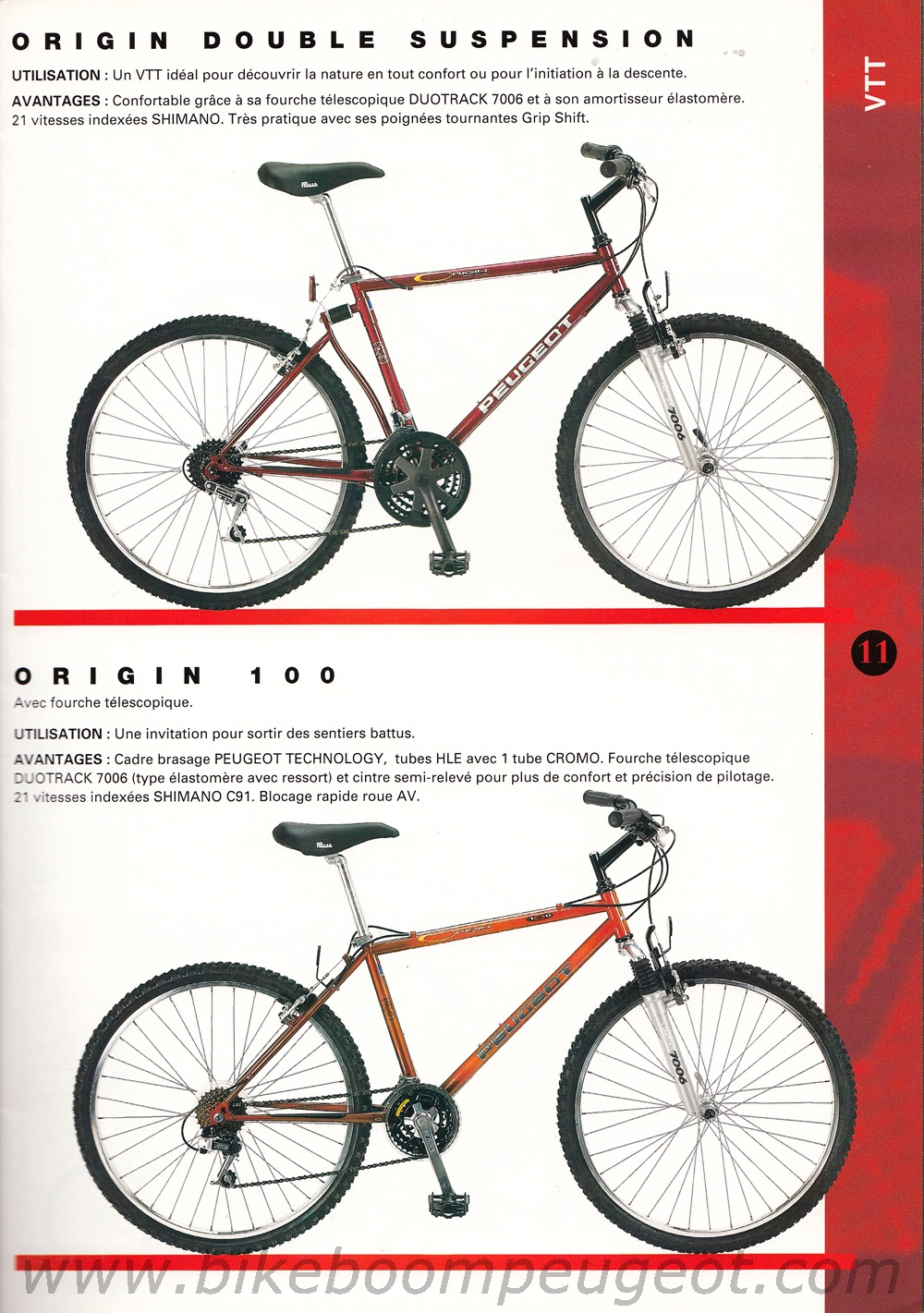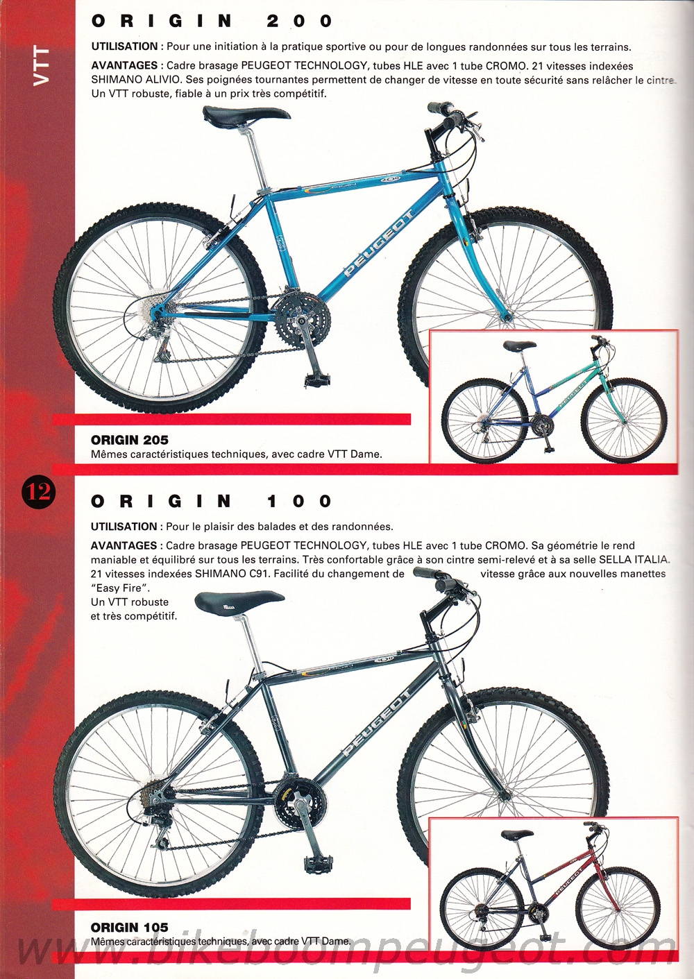 This brochure written in French was published in 1996, based on the text in the publication (e.g., "La collection VTT Peugeot 96."), by the CycleEurope Groupe and includes the full line of non-performance Peugeot bicycles. The CycleEurope Groupe also published in 1996 a Team Line brochure only covering Peugeot's a la carte performance bicycles.