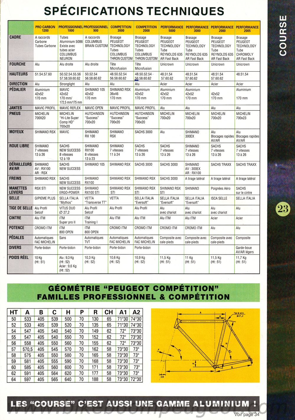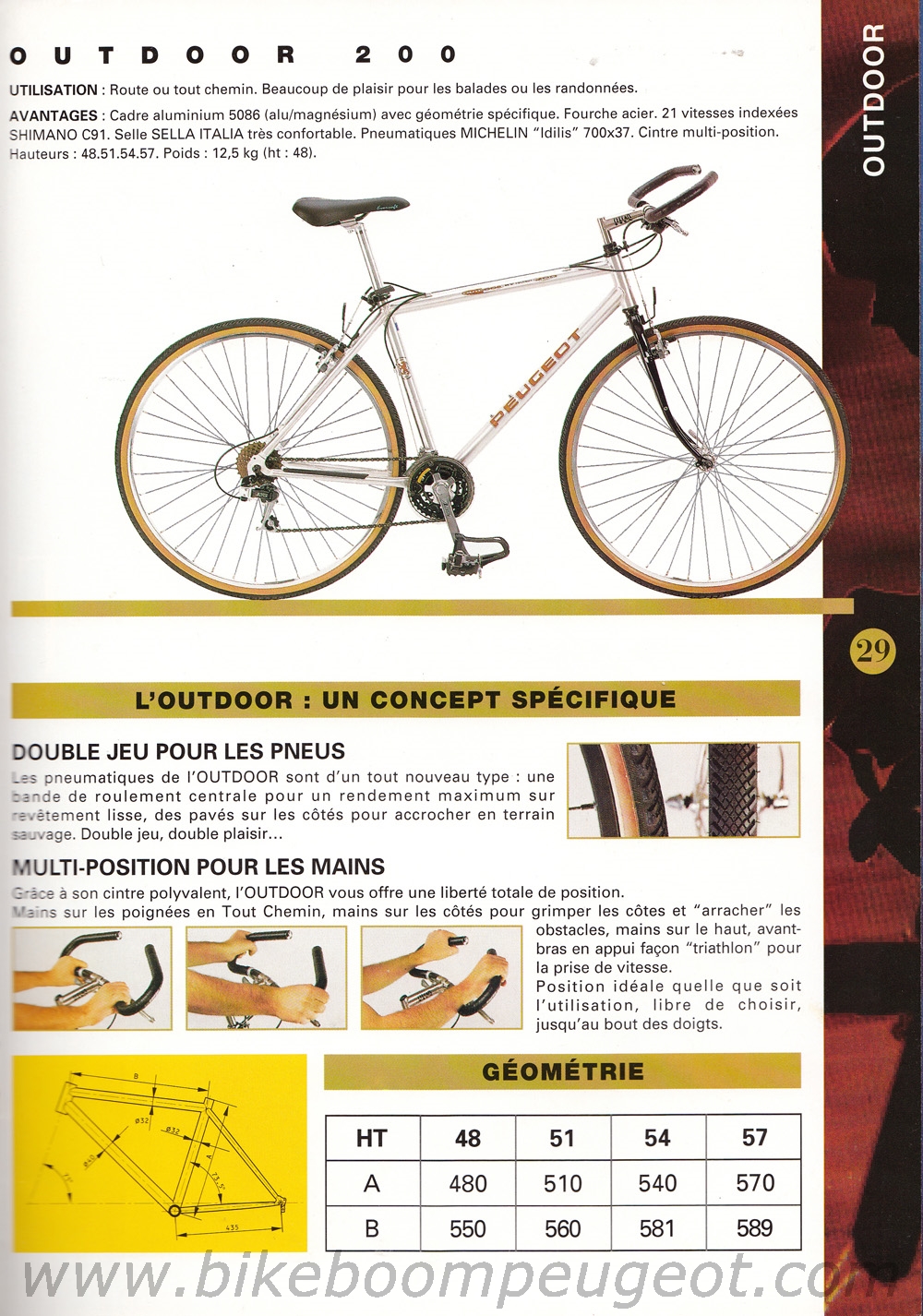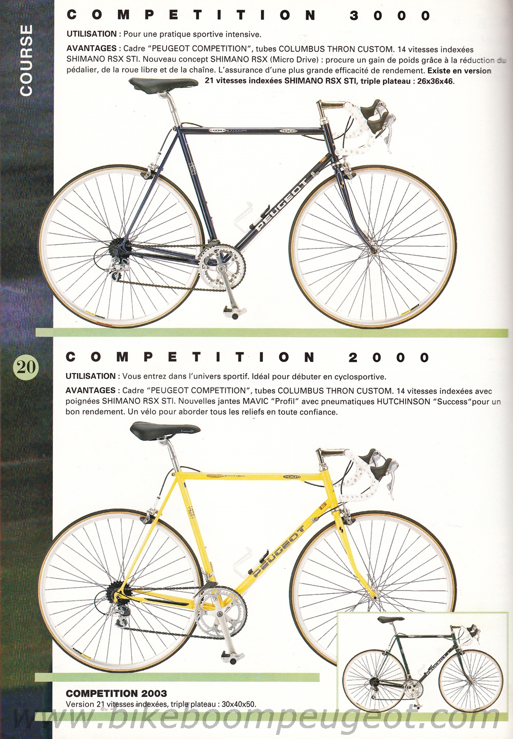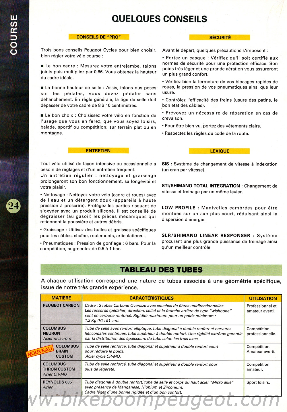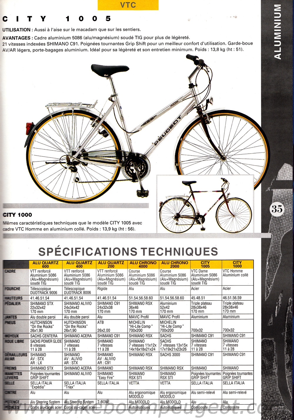 This brochure written in French was published in 1996, based on the text in the publication (e.g., "La collection VTT Peugeot 96."), by the CycleEurope Groupe and includes the full line of non-performance Peugeot bicycles. The CycleEurope Groupe also published in 1996 a Team Line brochure only covering Peugeot's a la carte performance bicycles.