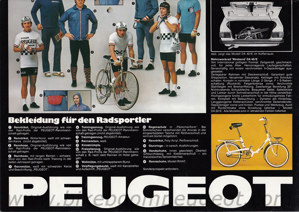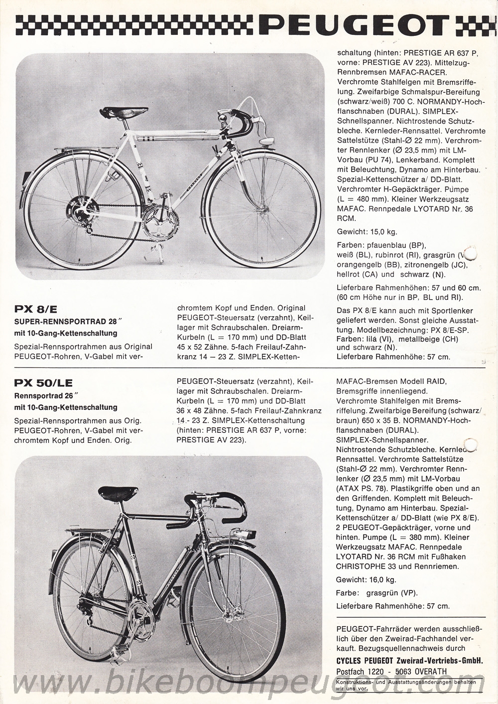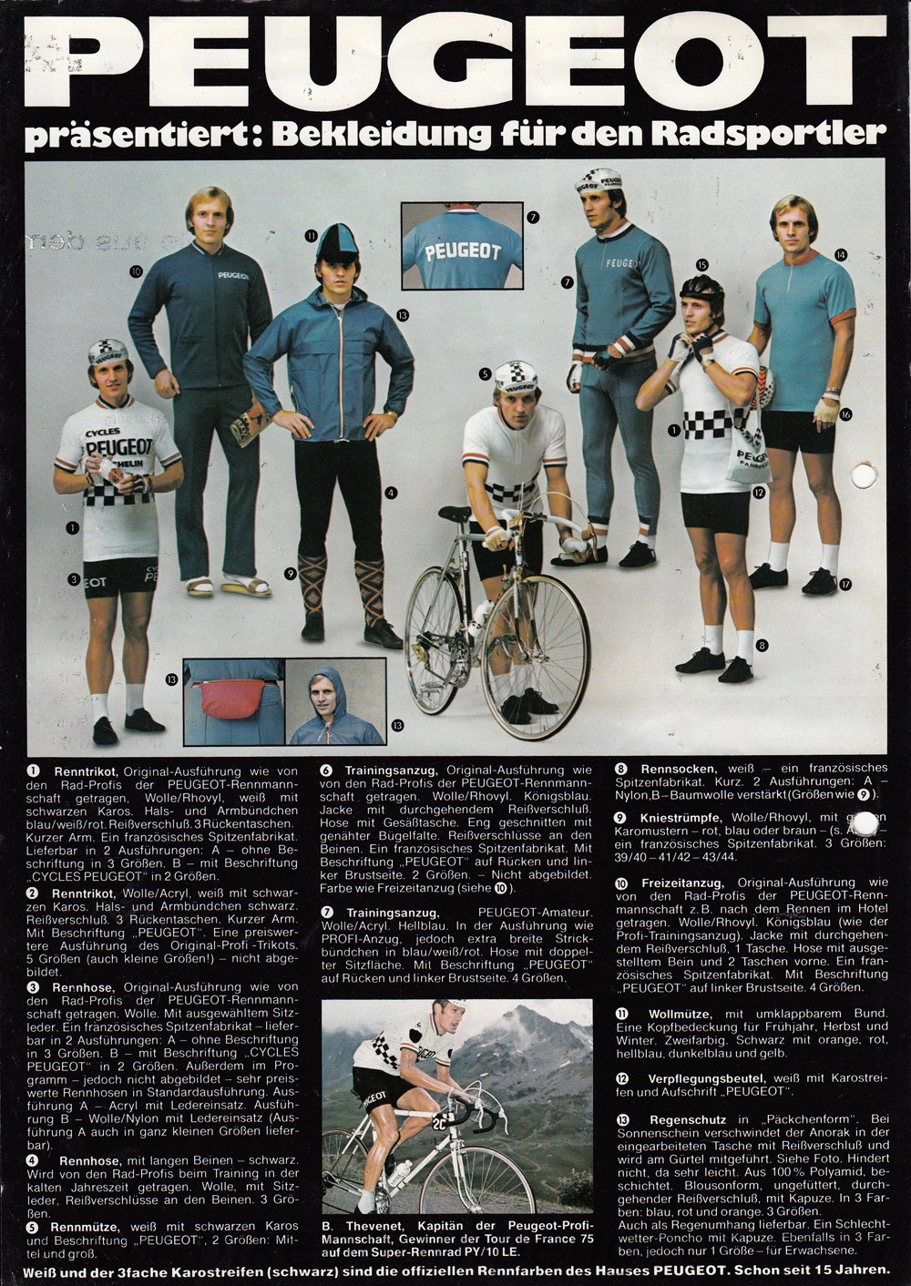 This undated flyer is believed to be of 1976 vintage. It notes Bernard Thevenet's 1975 Tour de France win on the PY/10LE, and the front photo is the same as in the brochure above.