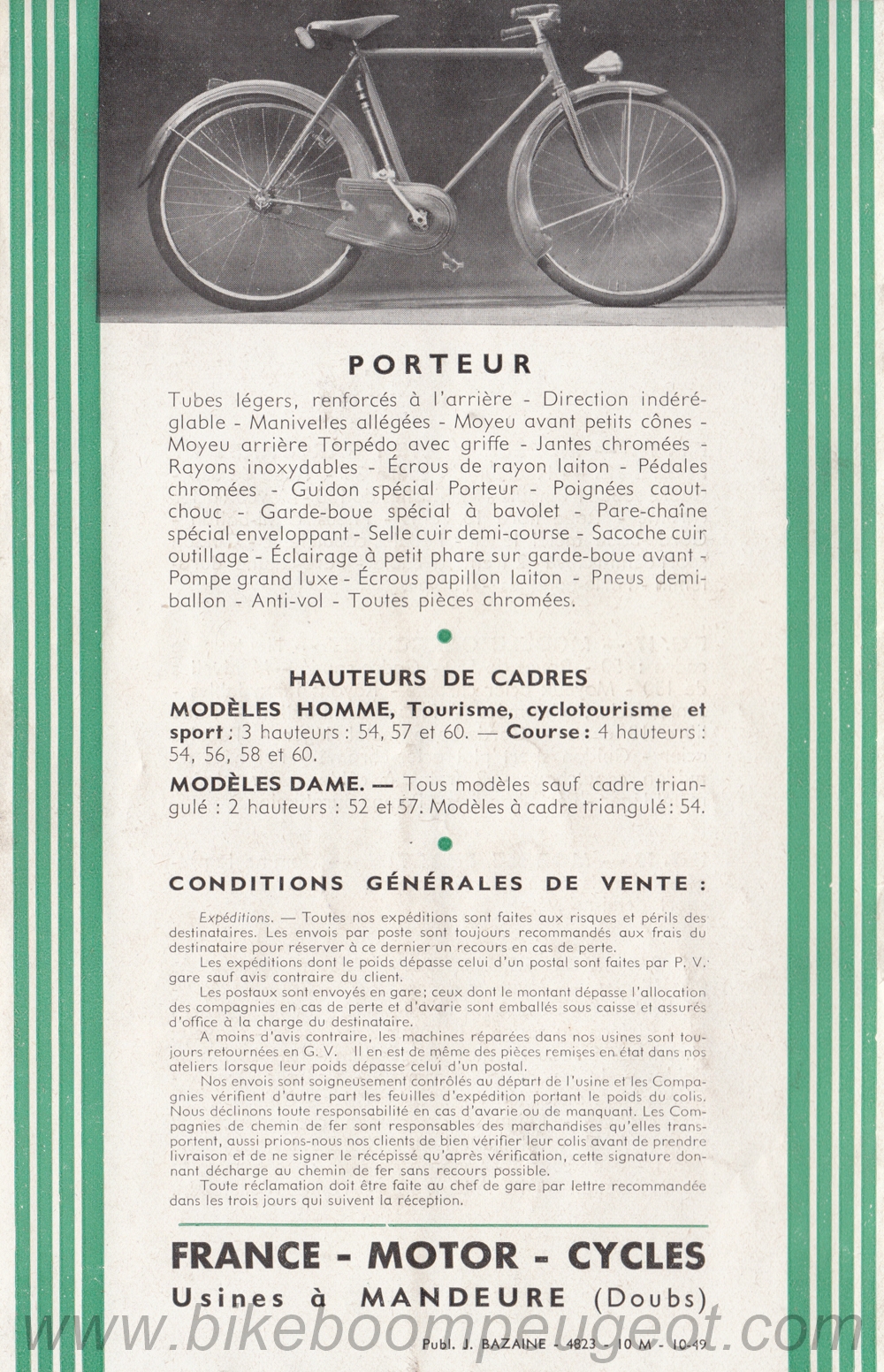 Porteur, General Conditions