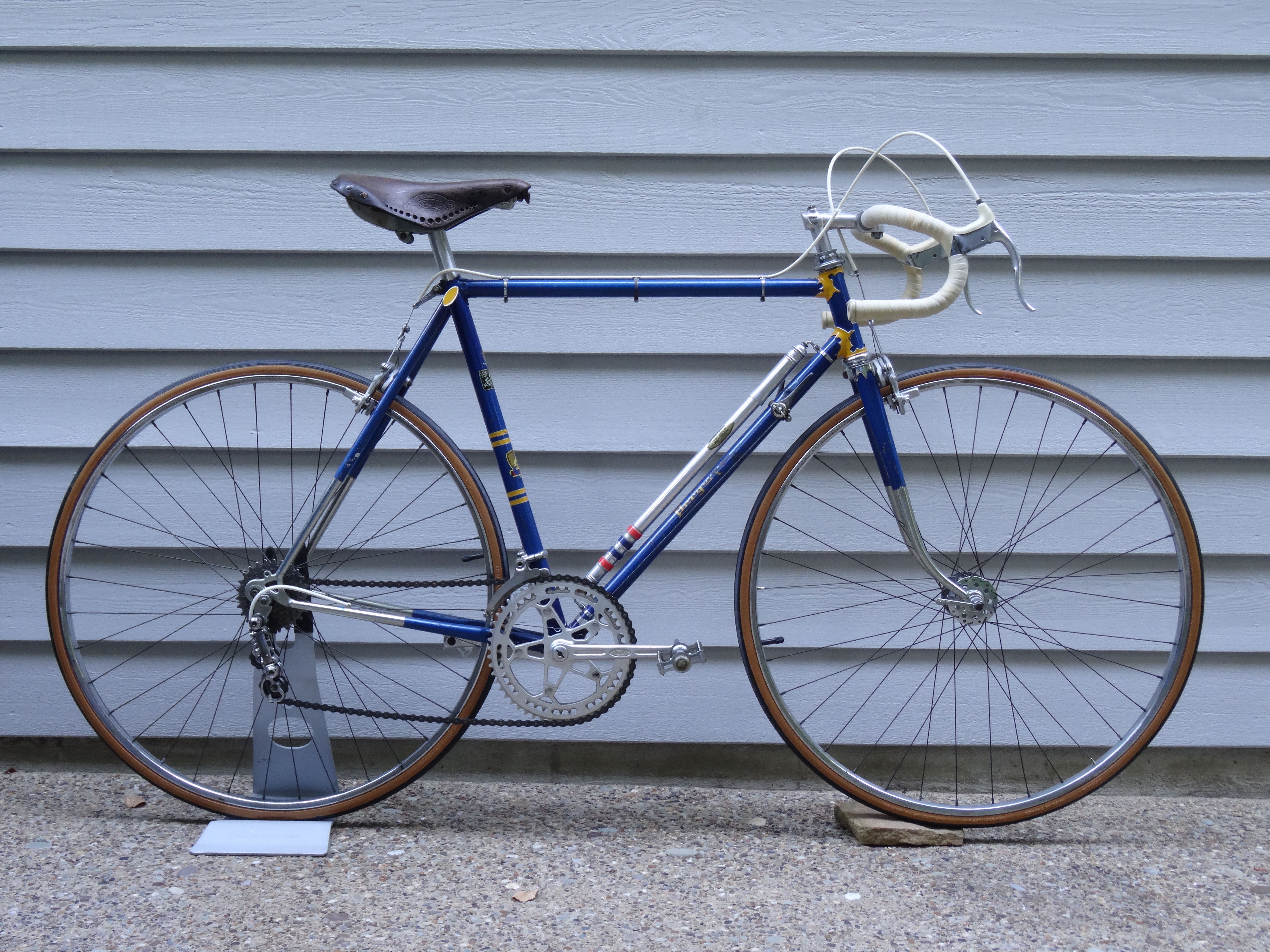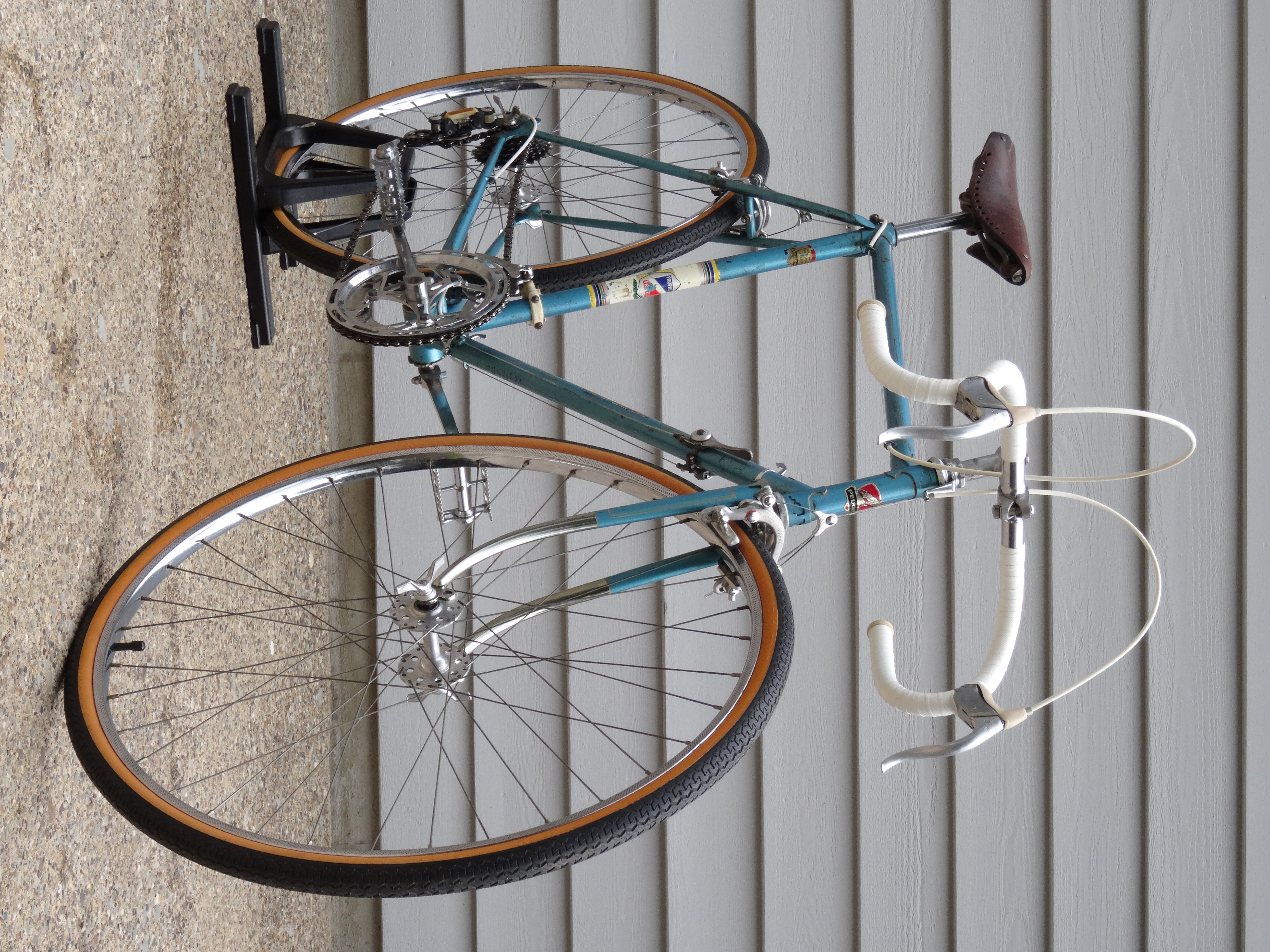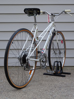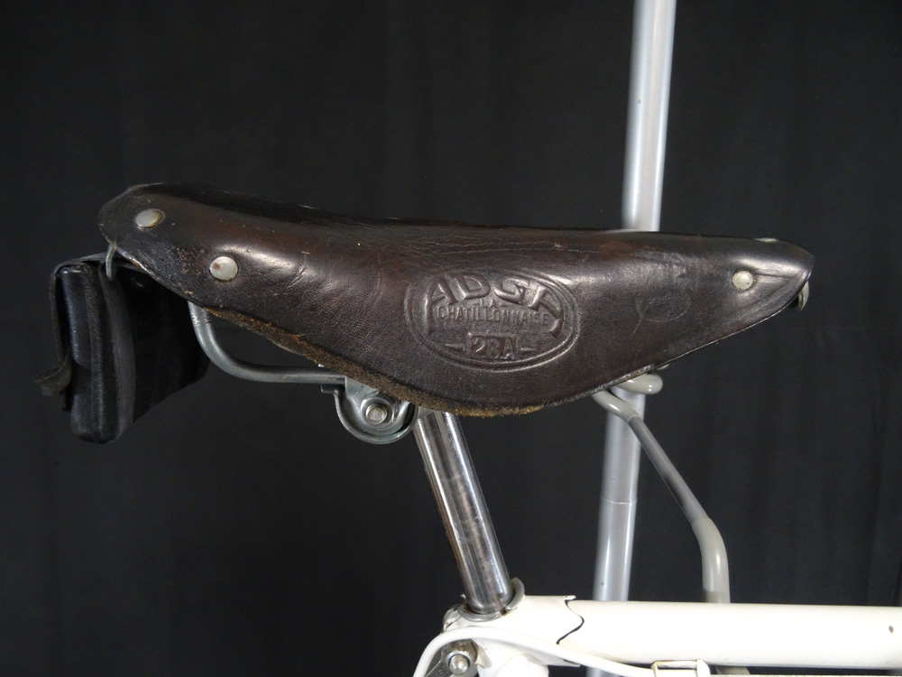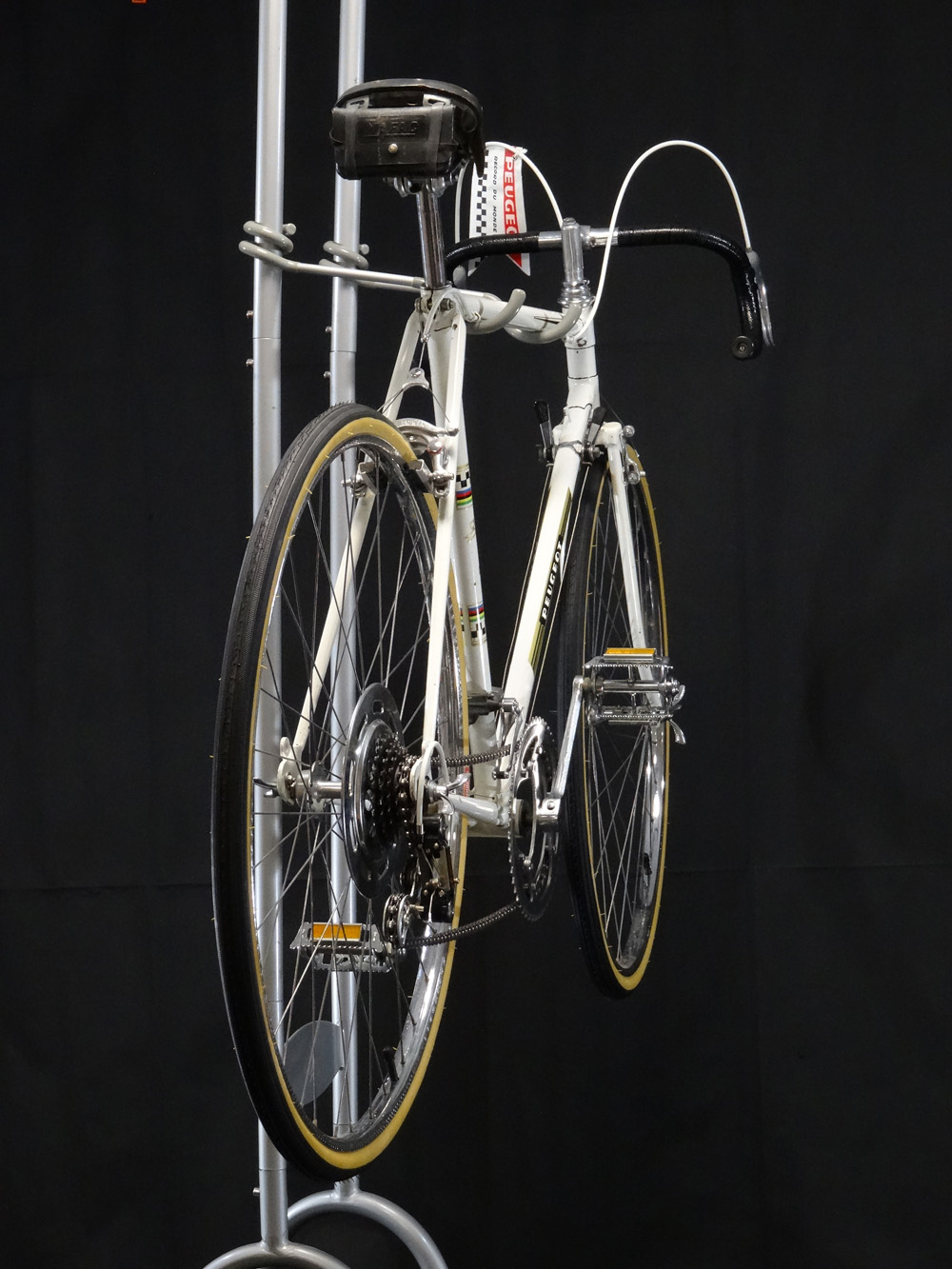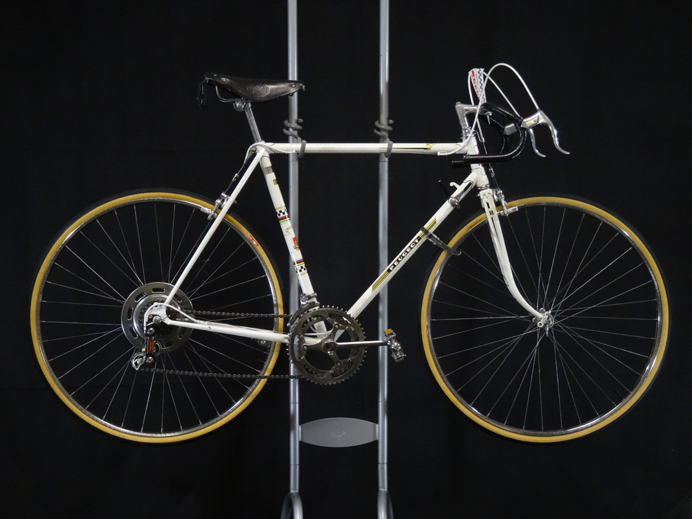 This bicycle inspired the BikeBoomPeugeot website. It was purchaed by my father in 1972 from Visentin's Bike & Mower in Oyster Bay, New York and occasionally ridden by me during my youth on Long Island. I have been told that white AO8's were not common. The bicycle spent much of its life hanging from our garage ceiling and is therefore mostly original and in great condition. The original pedals were missing so they were replaced with NOS, along with the cables and housings, and tires. The bicycle came factory-equipped with a non-standard DEA Super Chrome front rim. The headtube, bottom bracket, and hubs were rebuilt with Sunlite ball bearings and Phil Wood grease.
