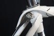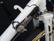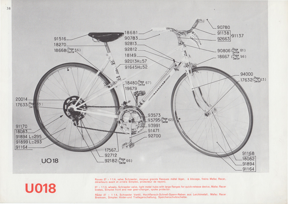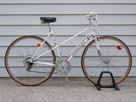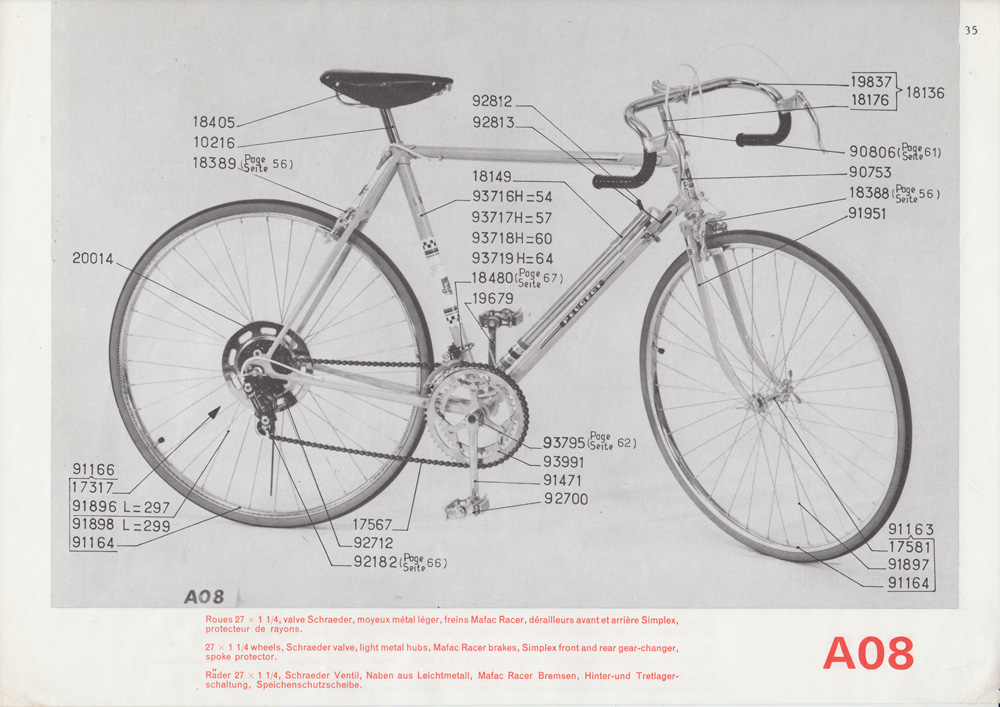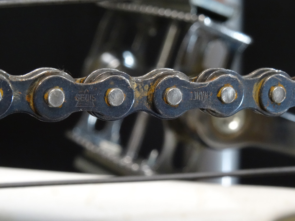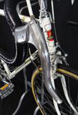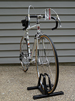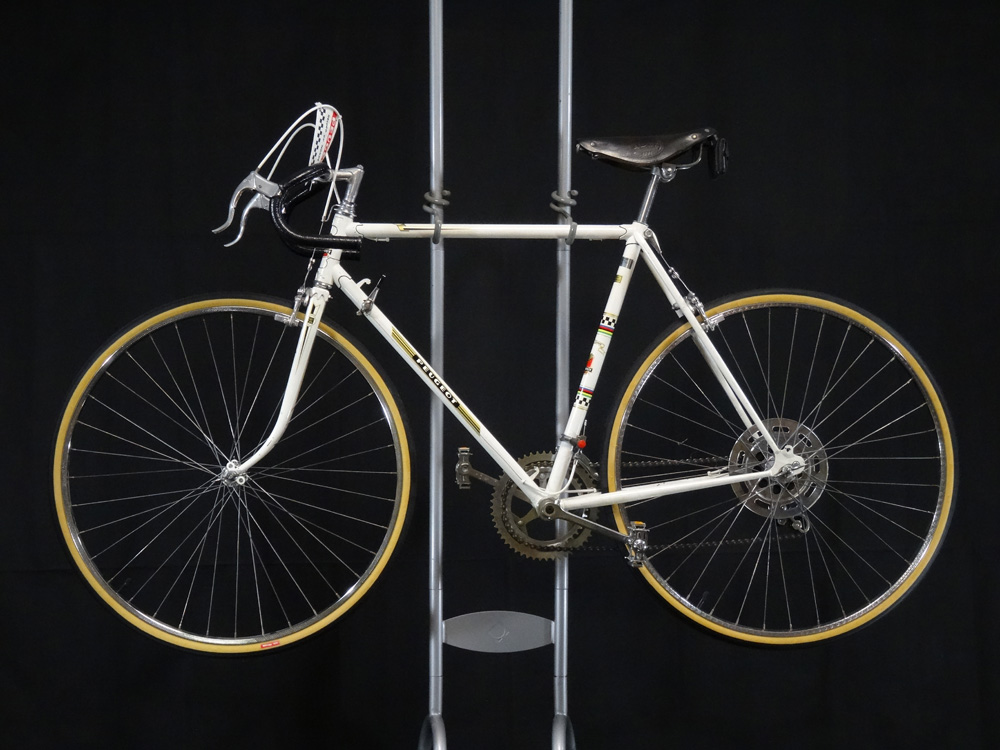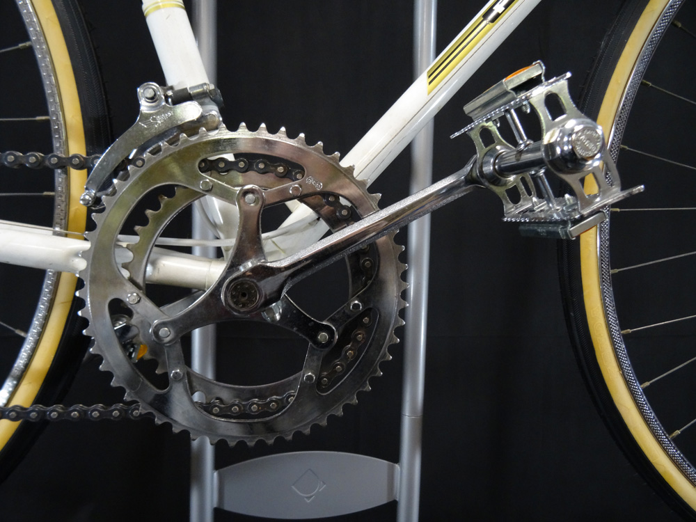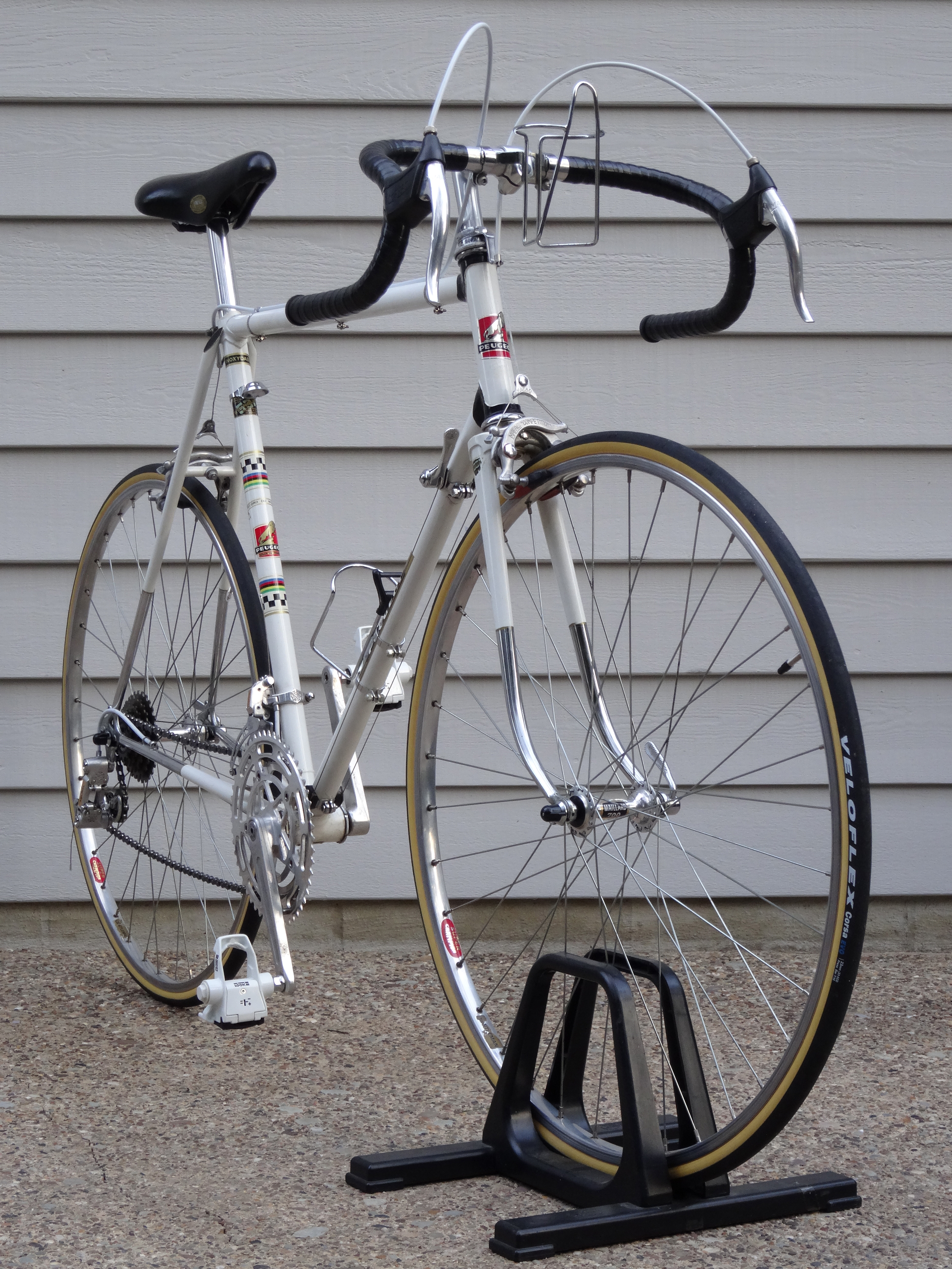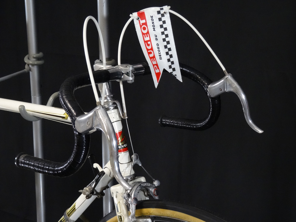 This bicycle inspired the BikeBoomPeugeot website. It was purchaed by my father in 1972 from Visentin's Bike & Mower in Oyster Bay, New York and occasionally ridden by me during my youth on Long Island. I have been told that white AO8's were not common. The bicycle spent much of its life hanging from our garage ceiling and is therefore mostly original and in great condition. The original pedals were missing so they were replaced with NOS, along with the cables and housings, and tires. The bicycle came factory-equipped with a non-standard DEA Super Chrome front rim. The headtube, bottom bracket, and hubs were rebuilt with Sunlite ball bearings and Phil Wood grease.