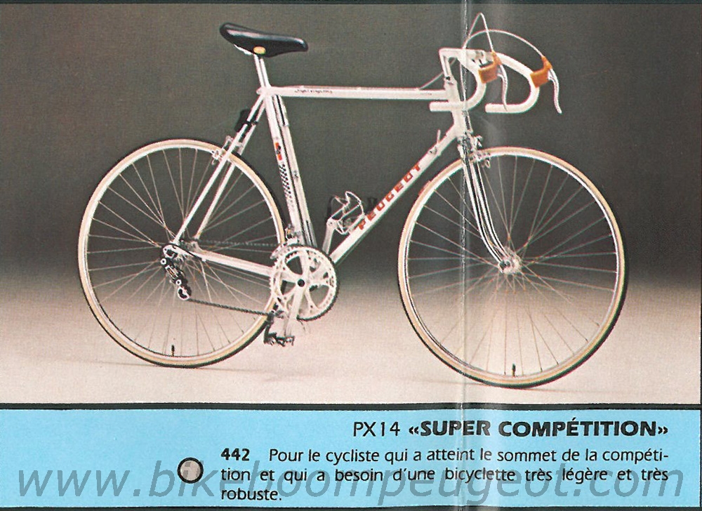 This an undated poster is believed to be of 1980 or 1981 vintage. The dating is based on the similarity of the PK12 and PX12 model (these are the only models assembled but not manufactured in Canada) descriptions with the Peugeot 1981-1982 USA brochures. Also, the poster has the Velo Sport (1974) Inc. designation similar to the 1979 Canada brochure, but not the Velo Sport (1982) Inc. 1983 copyright designation of the 1982 Canada brochure.