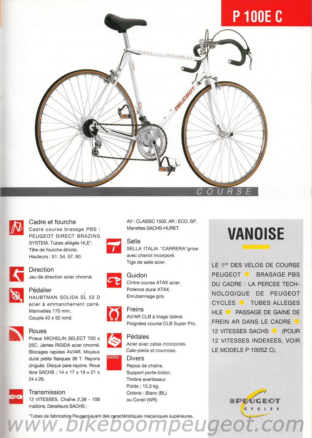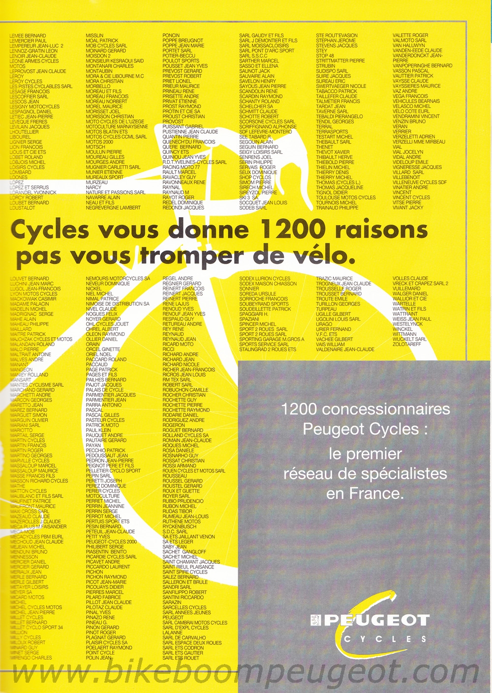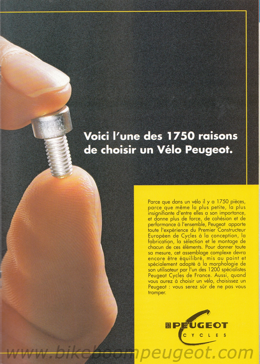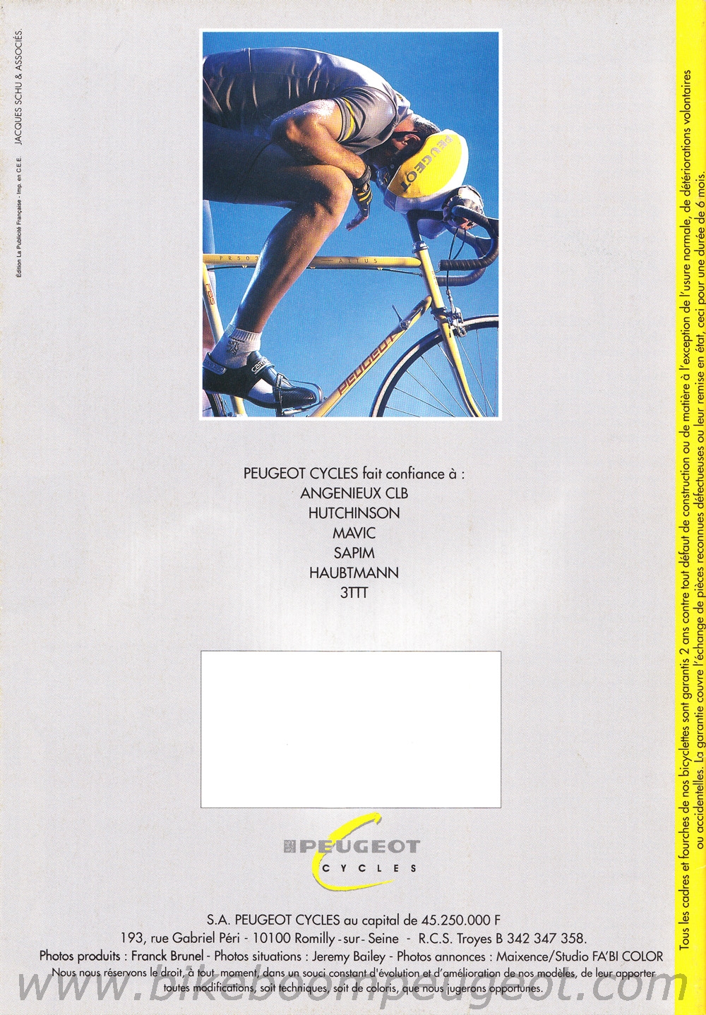 This is one of three French brochures published in 1992 by S.A. Peugeot Cycles, the other two being Touring and VTT brochures.