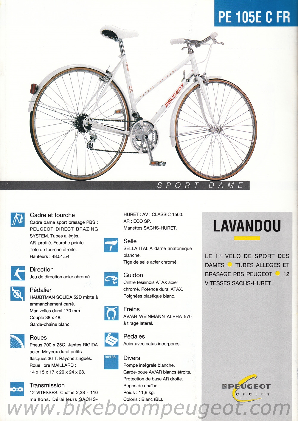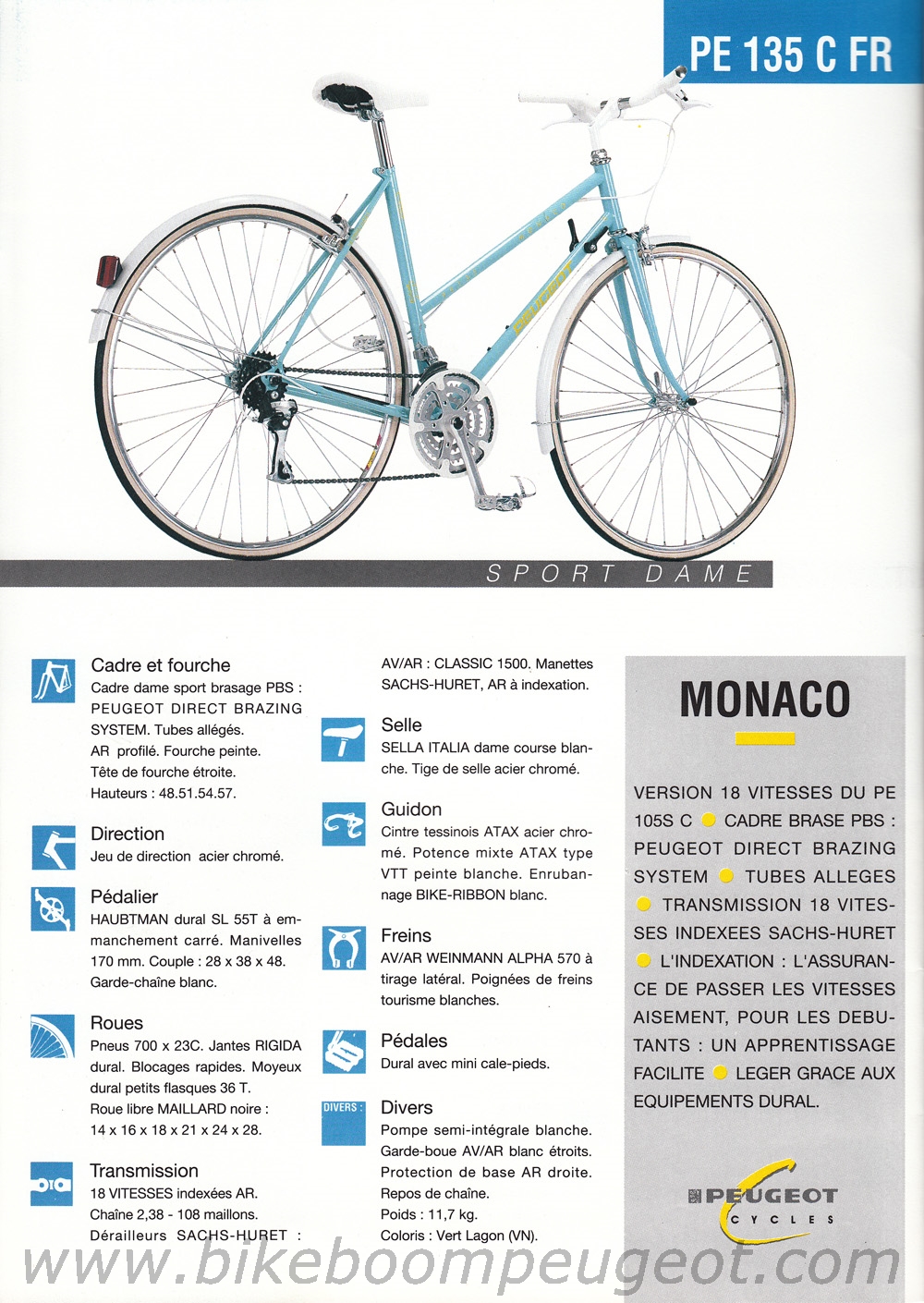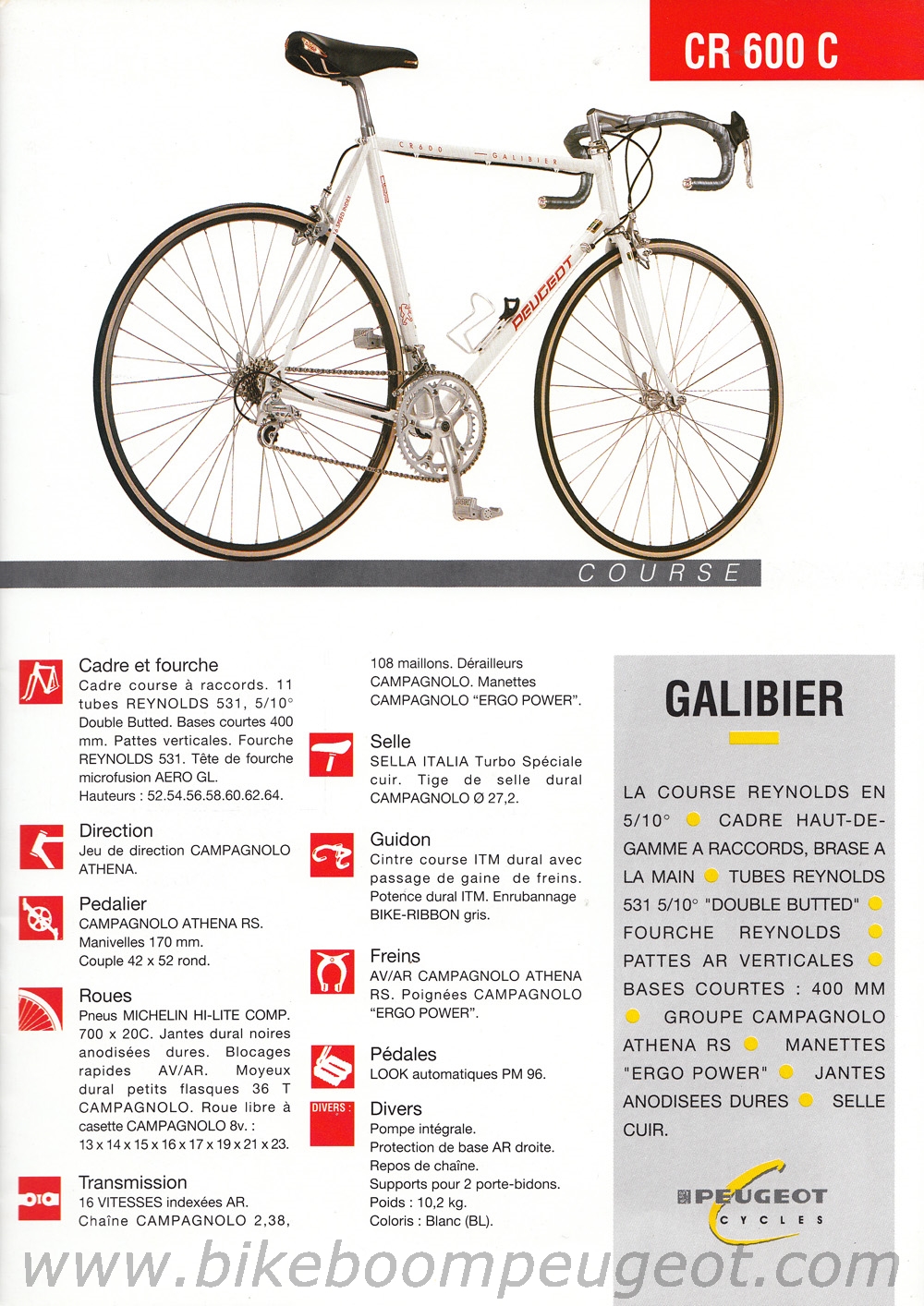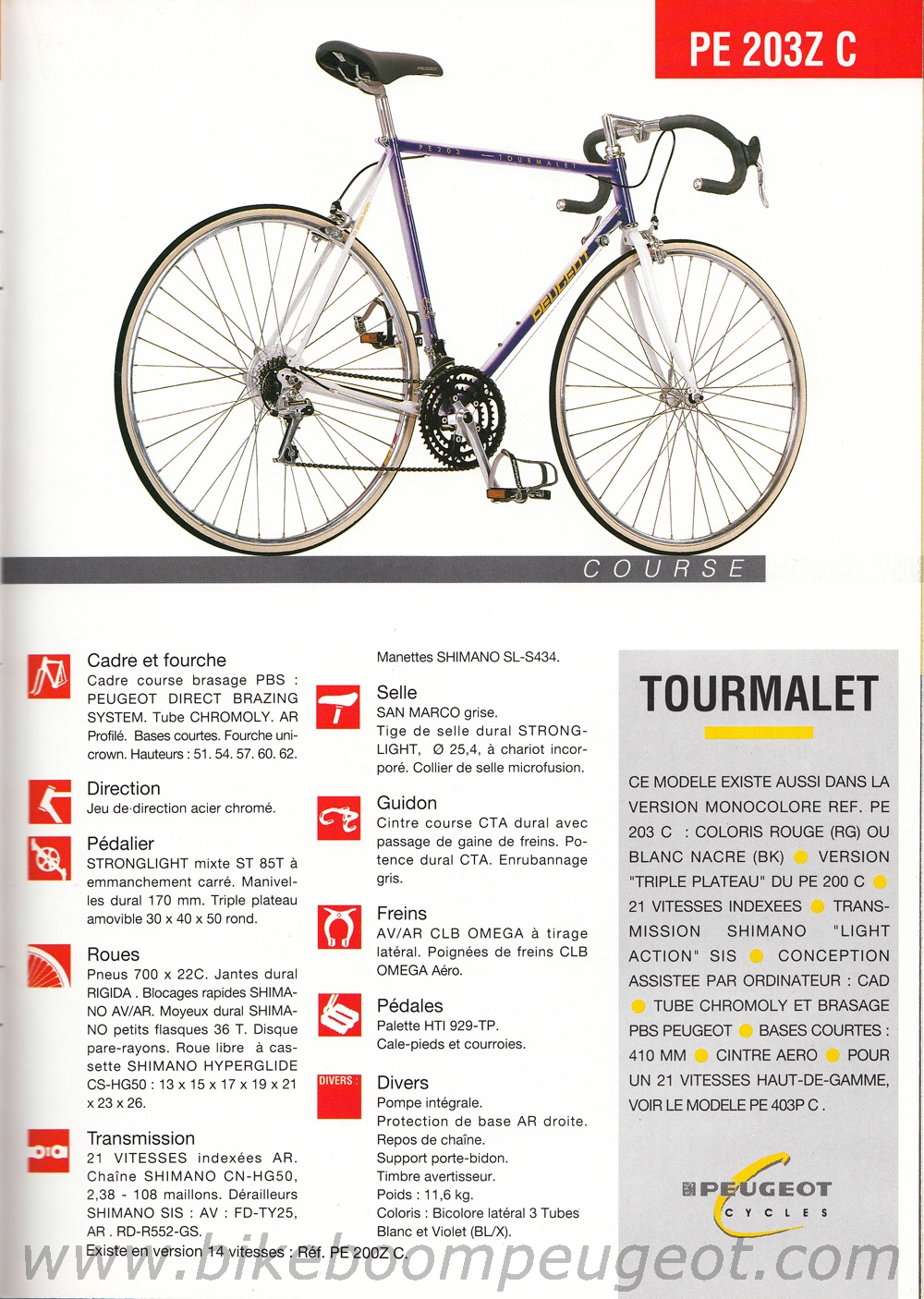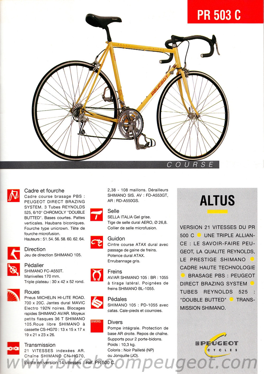 This is one of three French brochures published in 1992 by S.A. Peugeot Cycles, the other two being Touring and VTT brochures.