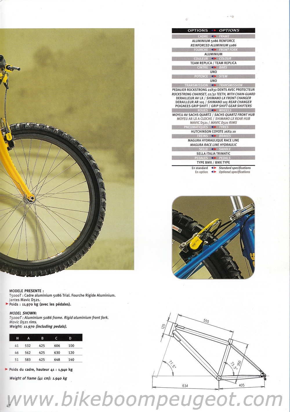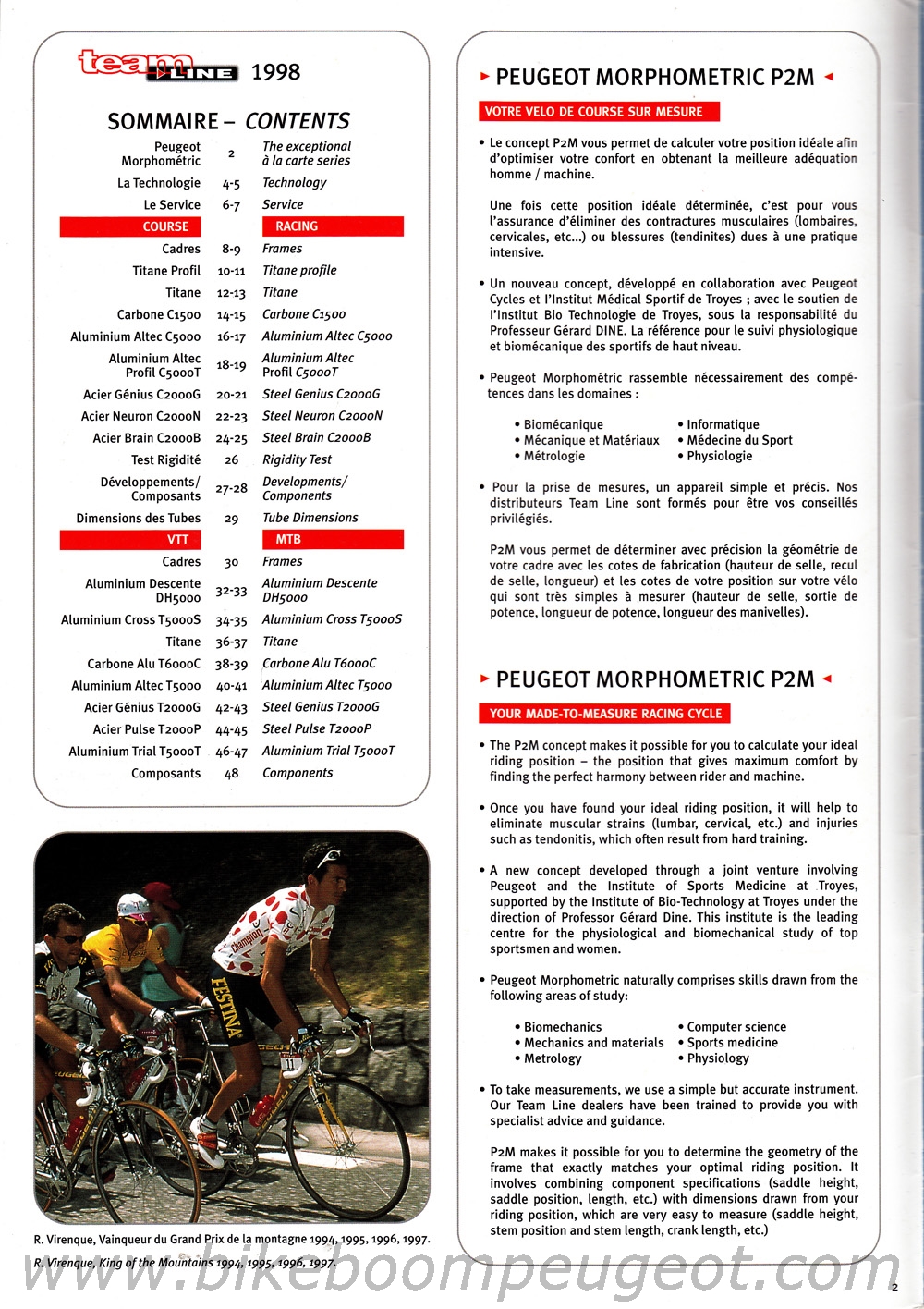 This dated Team Line brochure written in English and French was published by the CycleEurope Groupe and includes the Peugeot a la carte performance bicycles. Unfortunately, pages 7 to 44 are missing.