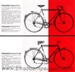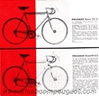 This undated German brochure is believed to be of 1964 vintage. The dating is based on the bicycle components listed, decals pictured, and the Peugeot racing team referenced. The PX10 comes equipped with a Stronglight Super Competition 63 crankset which was introduced in 1963. In addtion, the PX10 and other models show the familiar checkerboard pattern on the seat tube which was available to the public in 1964 based on dated literatue from other countries. Laslty, the write-up for the PX10 identifies the "Peugeot-BP" racing team which became the Peugeot-BP-Michelin team in 1965.