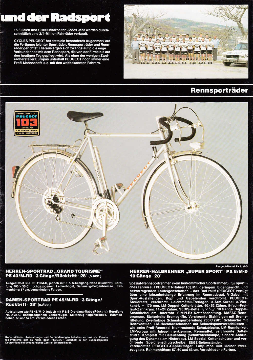 This undated brochure is believed to be of 1979 or 1980 vintage. The cover cartoon is similar to the 1979 French and 1980 Dutch brochures and Prestige model components are more similar to the 1981 than 1979 brochure.