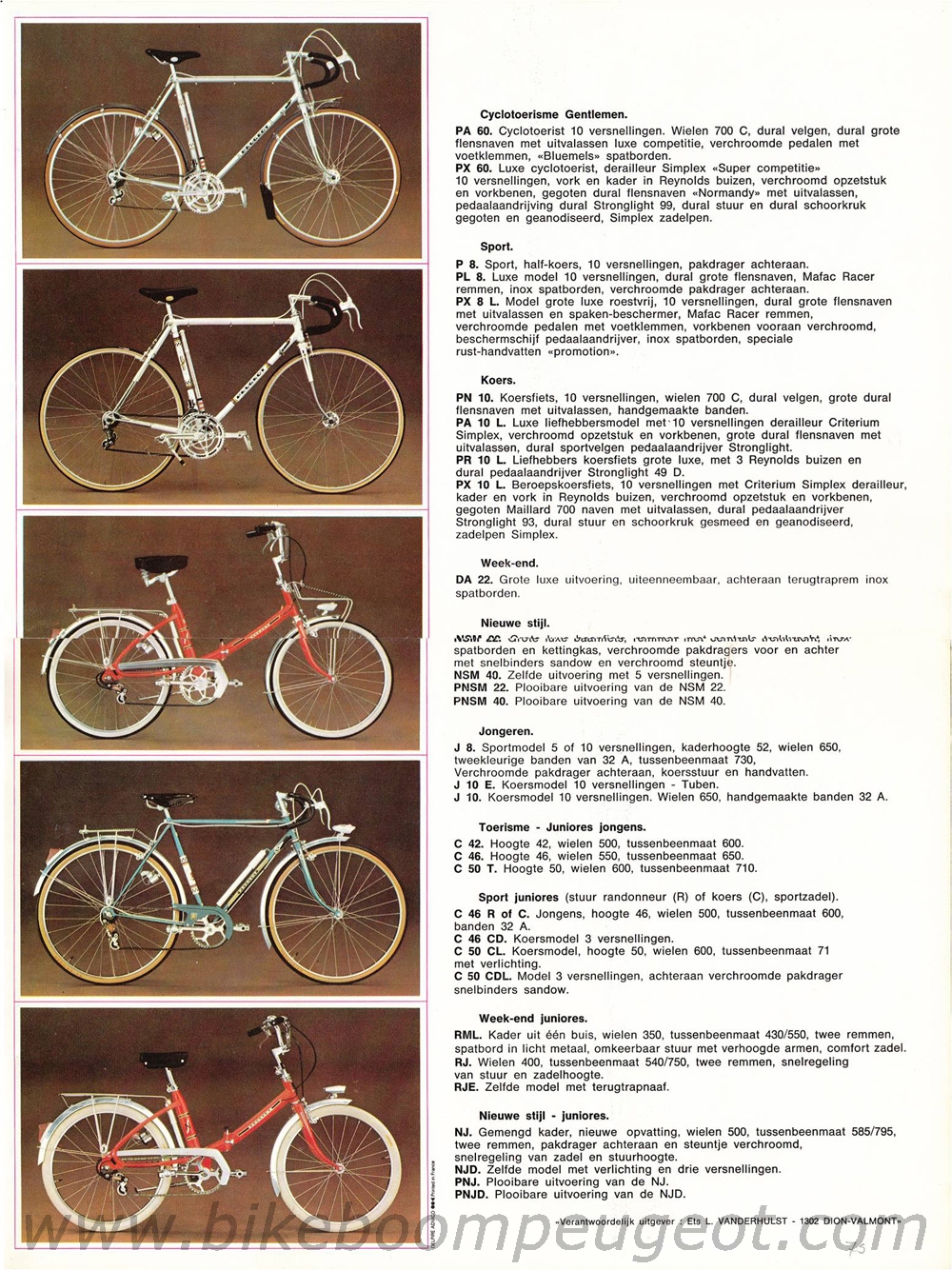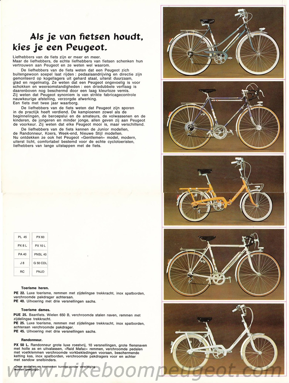 Based on other Dutch and French brochures, as well as the bicycles depicted, this undated brochure is believed to be of 1974 or 1975 vintage.