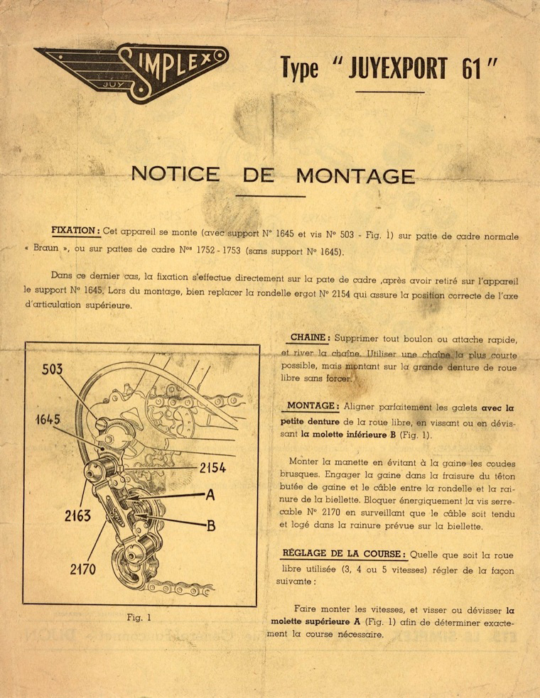 This was the first Simplex Delrin plastic derailleur that came into use in 1962 on the Peugeot 'U' models.