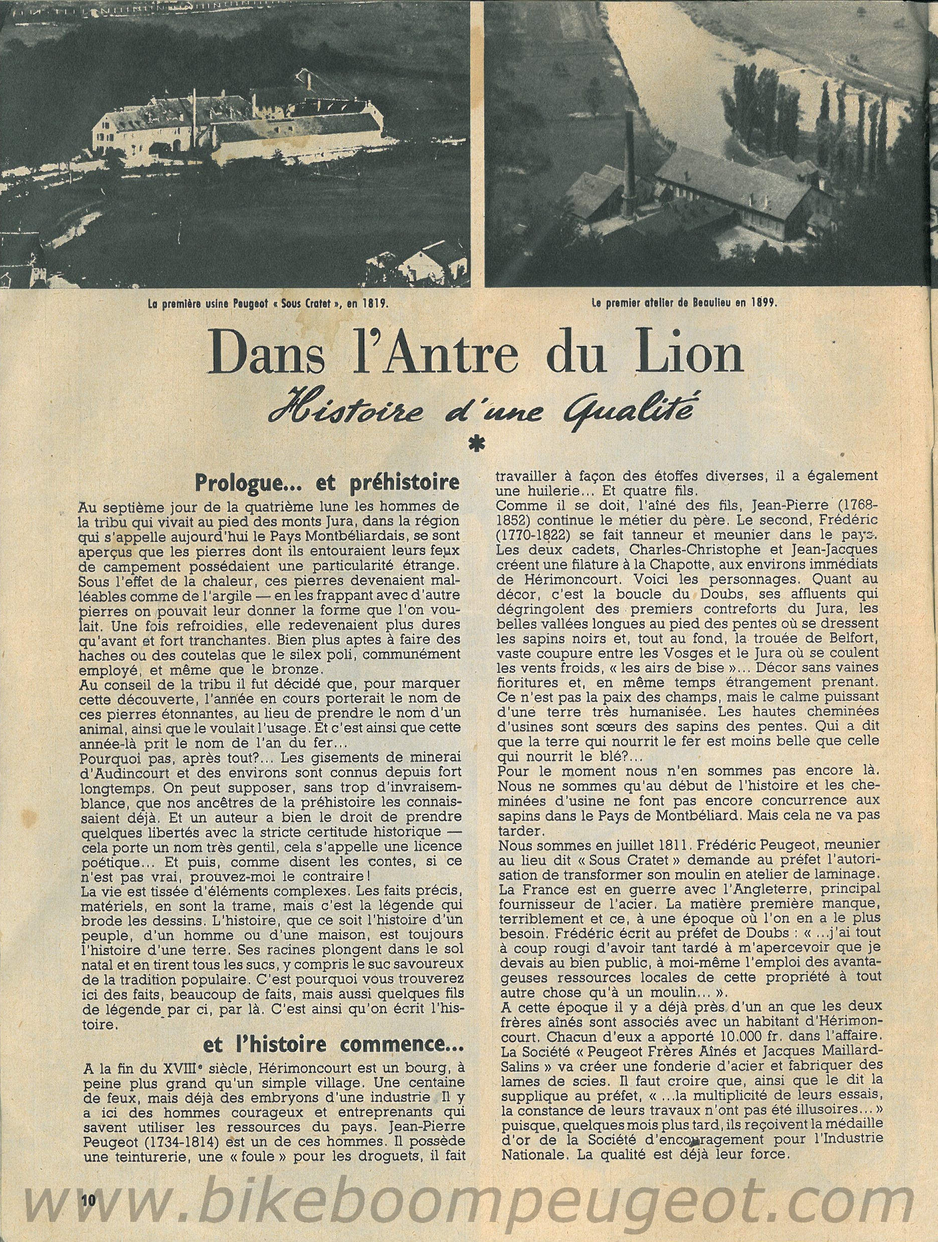 This is a 50 page document so only the pages that pertain to the history of the Peugeot company or bicycles are presented. Because of the large page dimensions and small print of the gazette, the linked images have not been reduced and are the actual scans size.